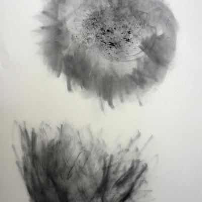 Assemblage de trois dessins, huile solide sur papier, 2017