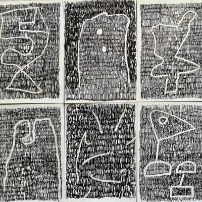 Encre de Chine sur cartes récupérées 10 x 15 cm